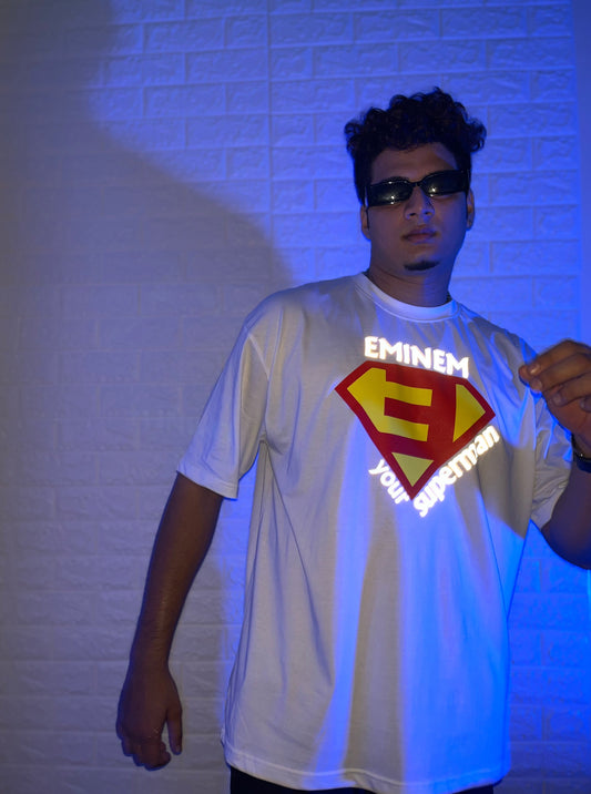 Elevate your wardrobe with this iconic Eminem-inspired Superman t-shirt. The bold 'E' logo merges the worlds of hip-hop and superhero strength, making it a must-have for fans who embrace both music and power. Whether you're out and about or chilling with friends, this tee lets you express your unique vibe with confidence and style.